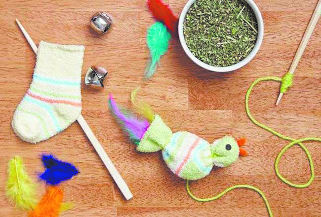 Una de la manera más fácil es hacer con ropa vieja la tradicional pelota de trapo. medias, pullover. Los atrae más con algunas hilachas que den movimiento.