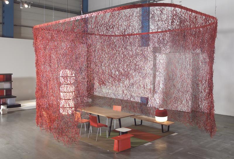 Ronan y Erwan Bouroullec diseñaron una nueva variante junto al fabricante textil Kvadrat: un sistema de módulos textiles flexibles combinables. El producto, llamado Clouds, se puede colocar en la pared o colgarlo del techo. Los módulos, que se unen entre sí con bandas de goma, pueden desarmarse y volver a combinarse. “Queríamos generar separadores que sean simples y prácticos, de modo que no sea necesaria mano de obra para montarlos o colgarlos”, dijo.