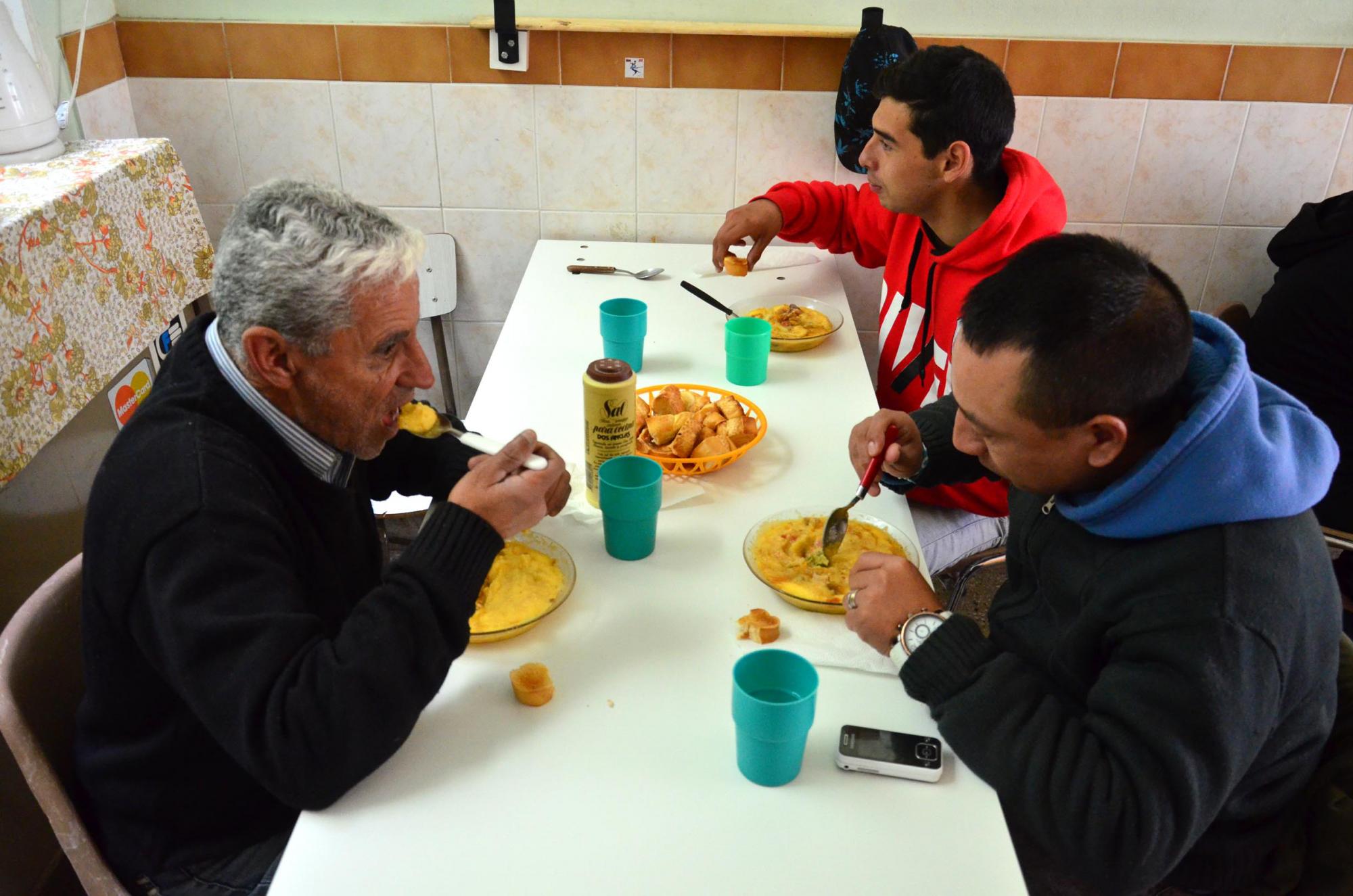 El albergue con una capacidad para 16 personas, ubicado en los salones parroquiales al lado de la catedral, garantiza pasar la fría noche bajo techo con cena, una cama, un sanitario donde bañarse con agua caliente y el desayuno. Allí concurren a diario entre 14 y 16 personas, la mayoría hombres de entre 20 y 50.