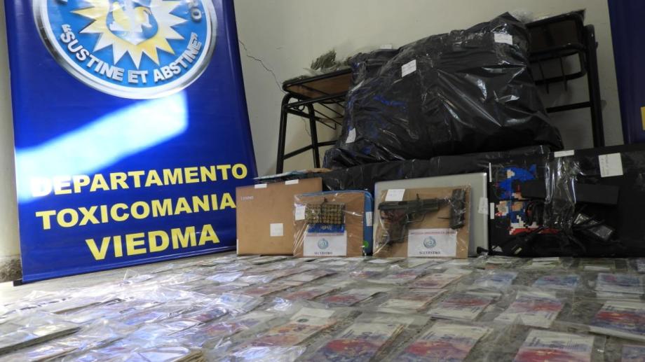 Una persona mayor de edad detenida y el secuestro de drogas, armas de fuego y dinero en efectivo fue el resultado de un operativo realizado en la capital rionegrina a cargo de la Delegación de Toxicomanía de la Policía de Río Negro.