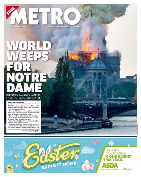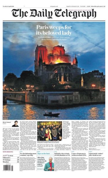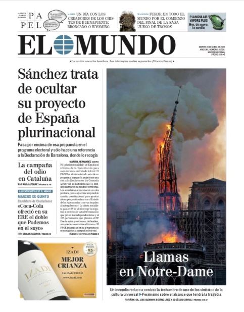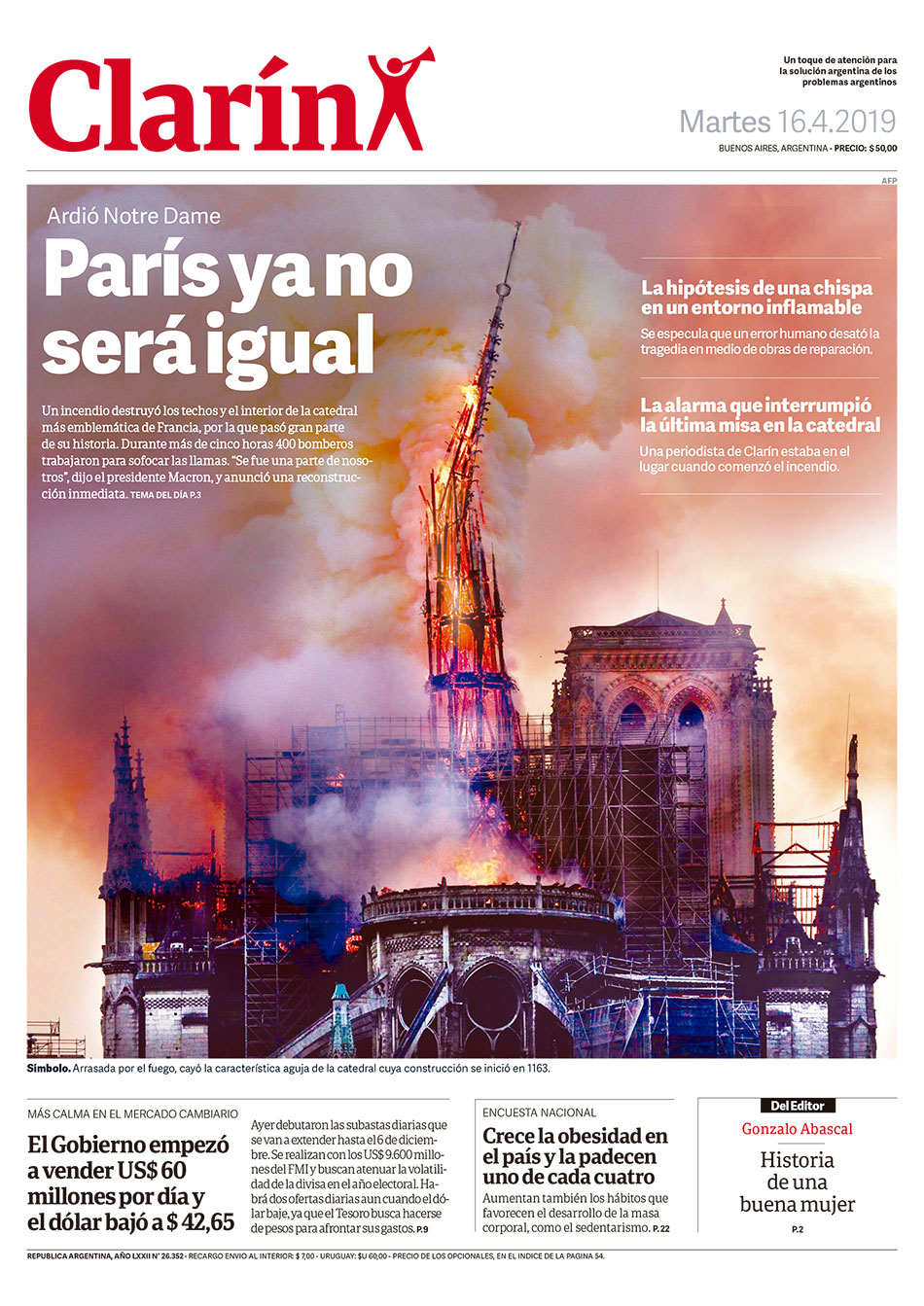 Incendio en Notre Dame: así lo reflejaron las tapas de los diarios en el mundo