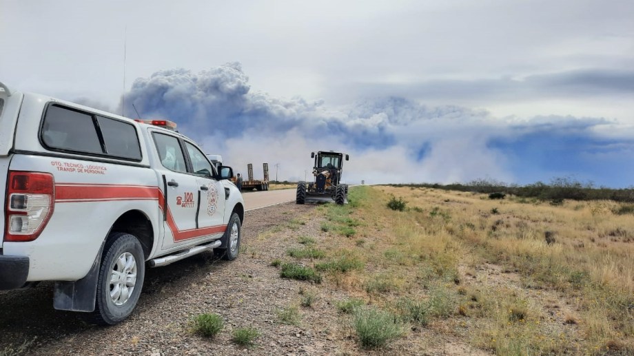 Los bomberos de Puertos Madryn, Trelew, Rawson y Puerto Pirámides, luchan por estas horas contra el incendio que se desarrolla al norte de la ciudad turística, y que a su paso acabó con fauna y flora.