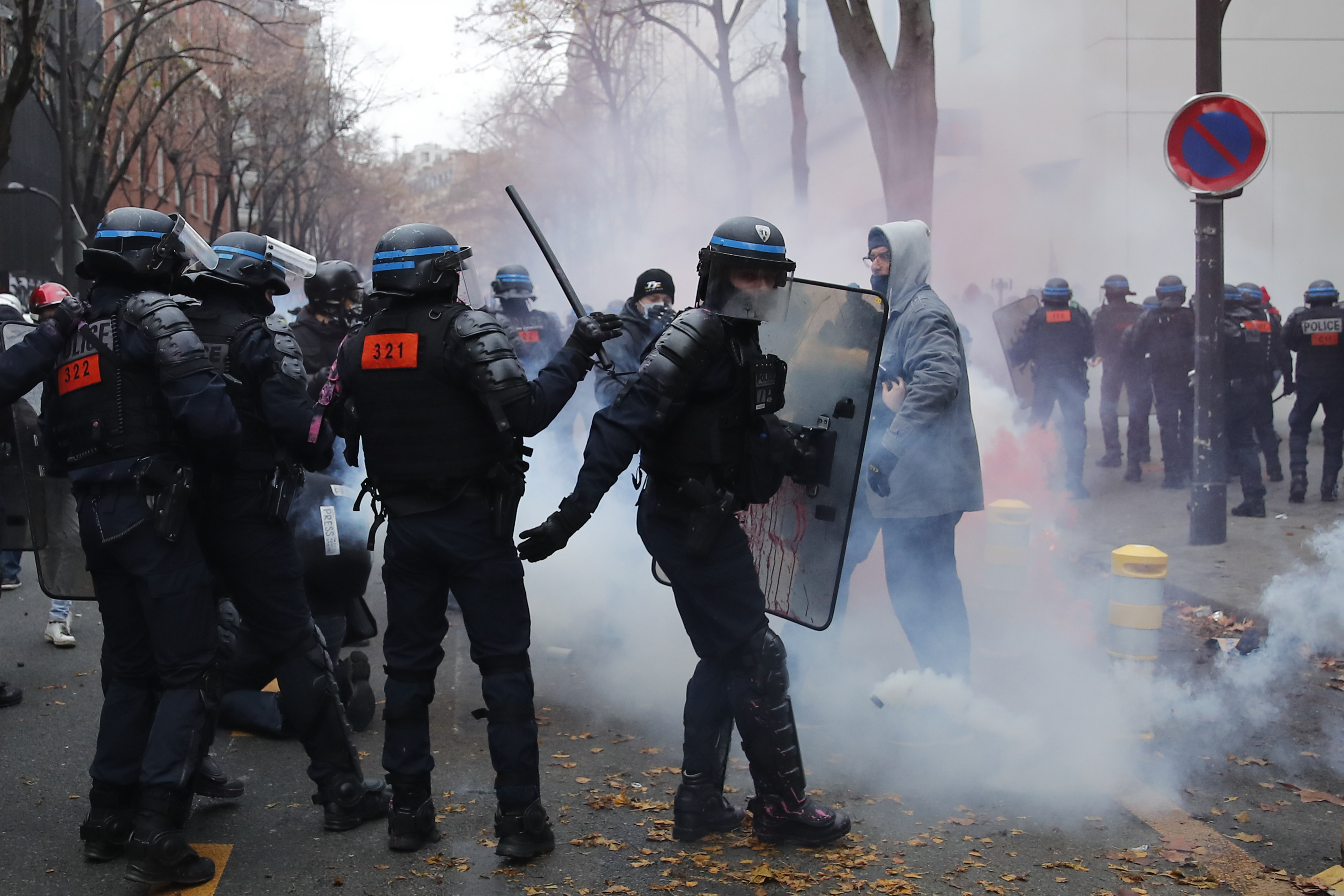 Las manifestaciones denuncian también la violencia policial, en especial tras dos polémicos casos a fines de noviembre: la brutal paliza propinada a un productor musical negro, por la que tres policías fueron inculpados, y la evacuación de un campo de migrantes en el centro de París.