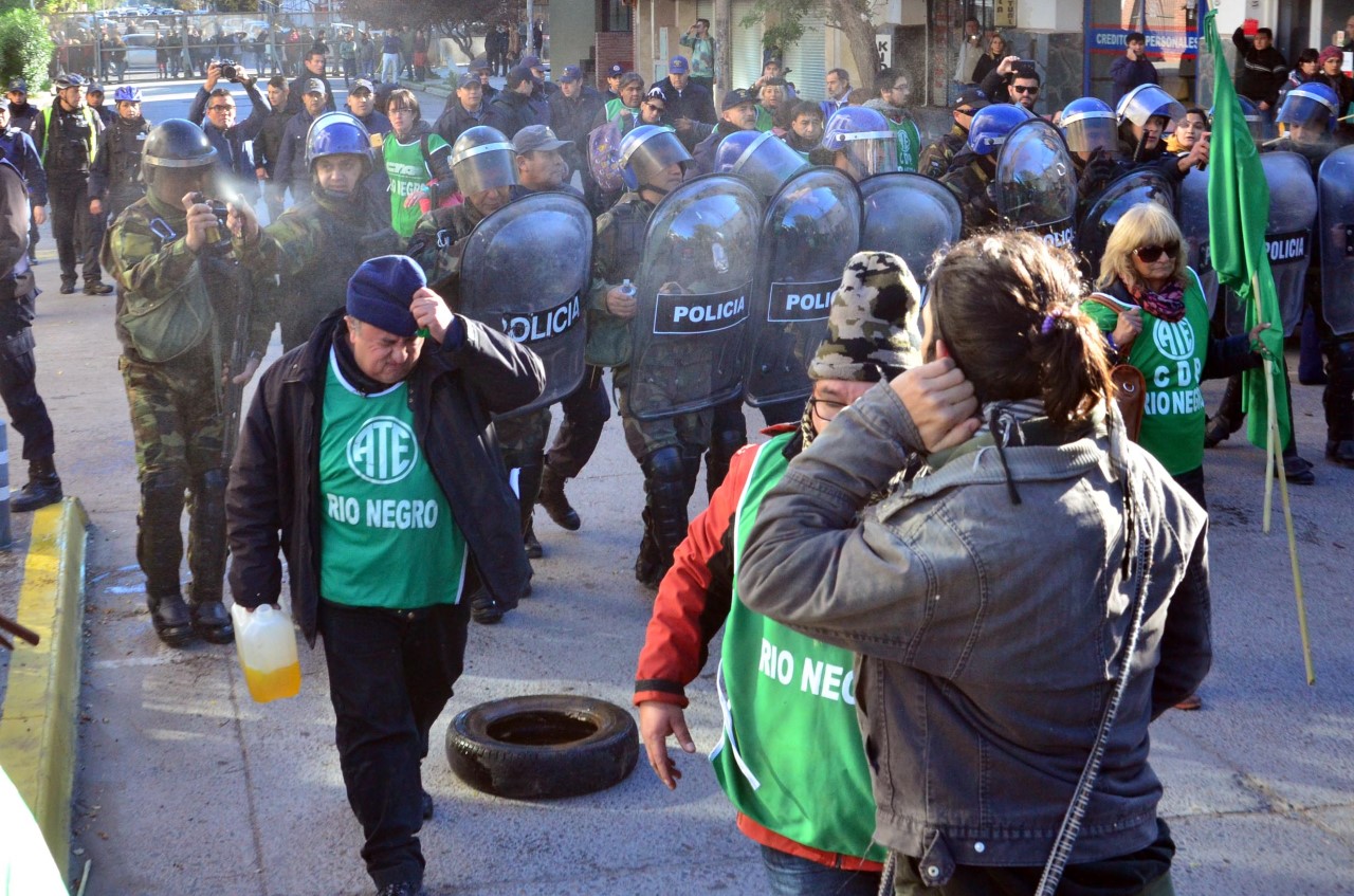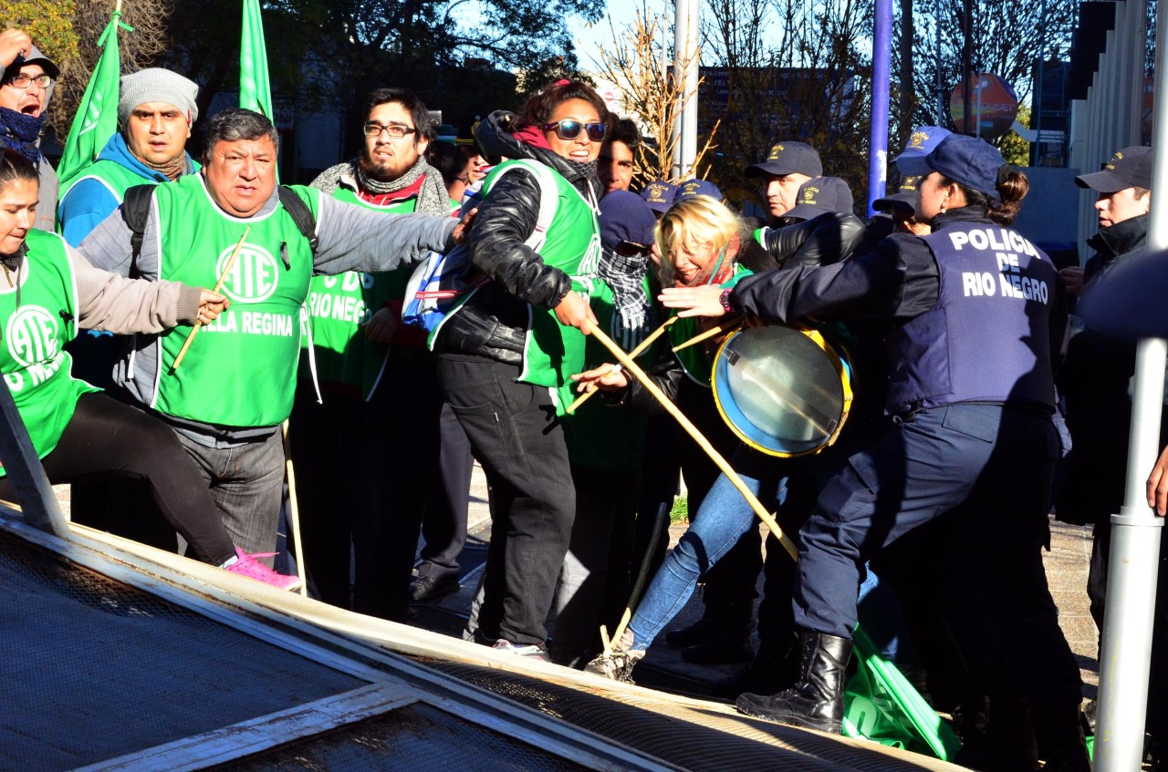 Según la FIscalía, los imputados arrojaron elementos contundentes contra el personal policial que estaba protegiendo el vallado dispuesto en el perímetro del edificio público. Además, mediante el uso de la fuerza, derribaron las vallas sobre agentes policiales ocasionándoles a éstos lesiones de diversa gravedad.