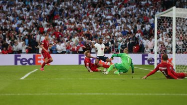 Jordan Pickford ya había aparecido con una atajada a Dolberg, que igual estaba fuera de juego, y luego Kasper Smichael le sacó un cabezazo bárbaro a Maguire. Así se fueron al tiempo suplementario.