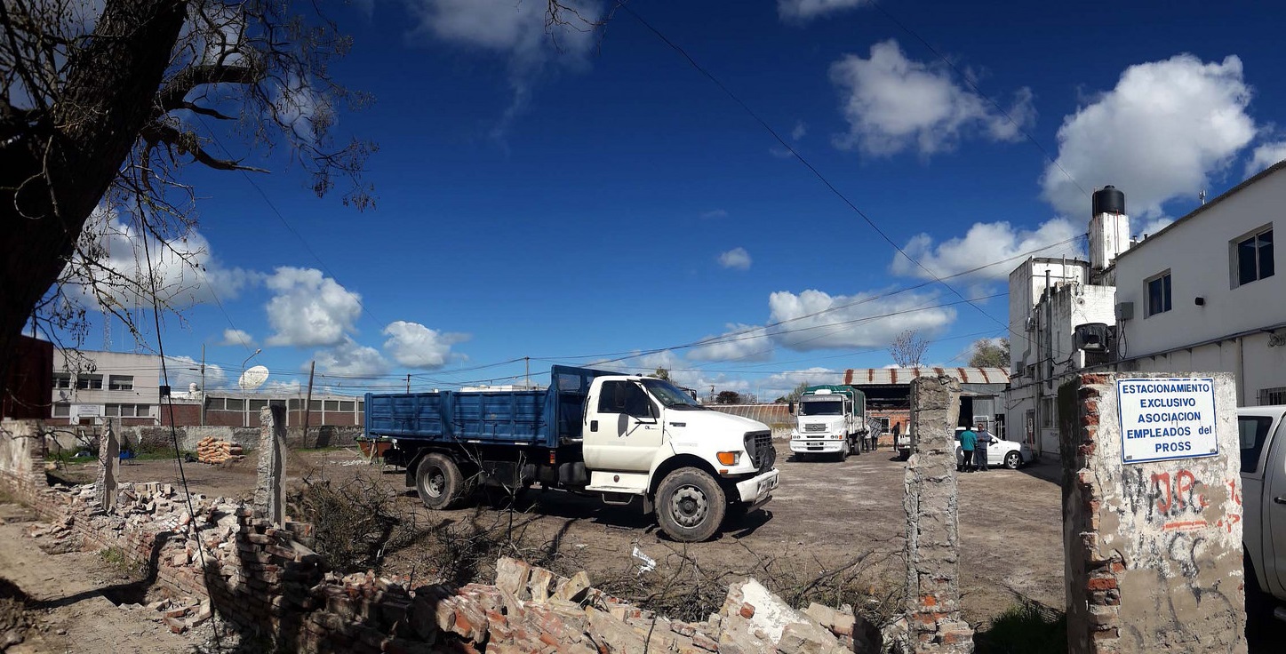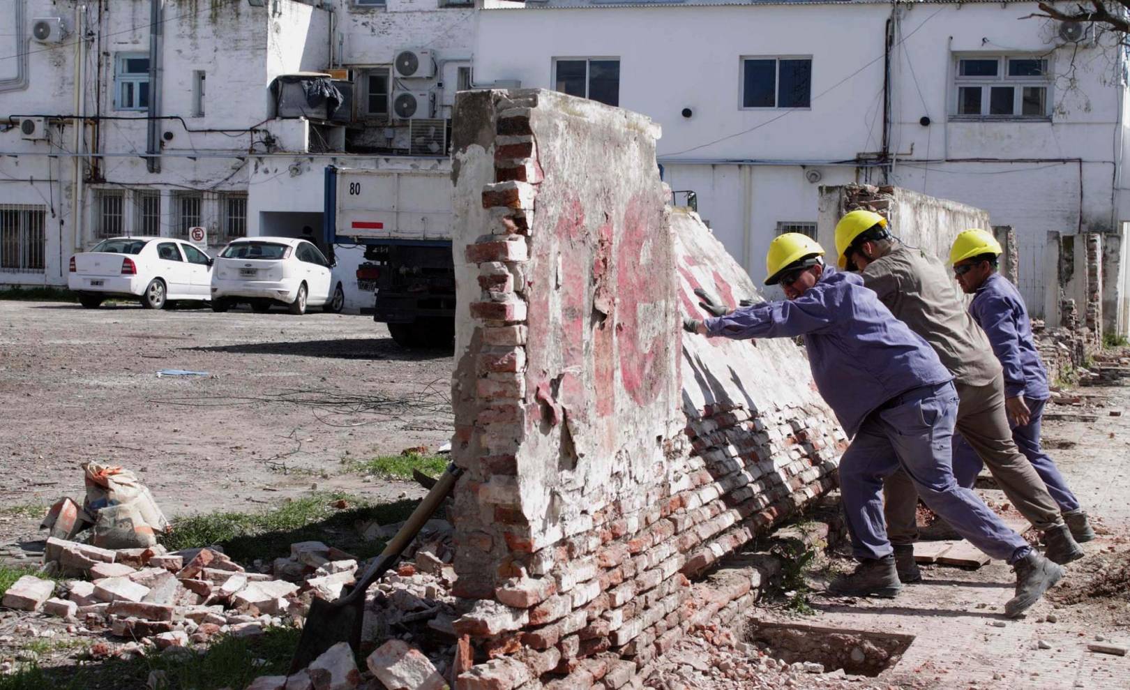 La empresa Construcciones Normalizadas, a cargo de la obra, trabaja en el desarmado de parte del galpón de depósito y en la construcción del nuevo paredón y medidas de seguridad con las que debe contar la obra.