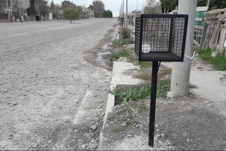 La Municipalidad de Viedma abastece a vecinos de cestos metálicos individuales de residuos, en cada uno de los domicilios de los barrios 30 de Marzo, 22 de Abril y en el sector Nehuén del barrio Mi Bandera en el marco de las obras de saneamiento general con infraestructura de servicios de gas y cloacas, cordón cuneta, desagües pluviales, veredas y consolidación de calles.