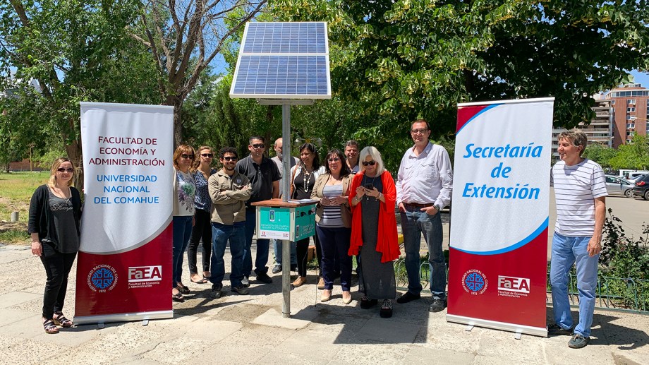 En la Universidad Nacional del Comahue instalaron una estación para recargar los celulares con paneles solares. Se trata de un dispositivo que se alimenta de energía renovable para permitir la carga a través de ocho puertos USB para celulares.