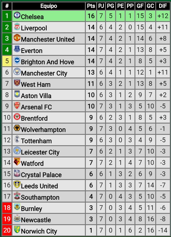 Quedó relegado Manchester United (14) por el 1-1 con Everton (14). Además, el Leeds de Bielsa salió de zona de descenso con su primer triunfo del campeonato, 1-0 sobre Watford con gol de Diego Llorente.