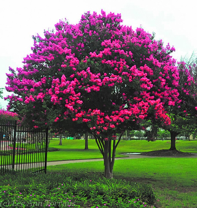 Crespon (Lagerstroemia indica): originario de China se trata de un árbol pequeño tipo arbusto grande de hoja caduca, muy utilizado en jardinería por su abundante floración de color rosa, rojo, lila, púrpura en verano. Solo florece en las zonas con veranos calurosos e inviernos suaves. El riego se debe hacer de forma regular durante los dos primeros años; en caso de sequía pierde todas las hojas.