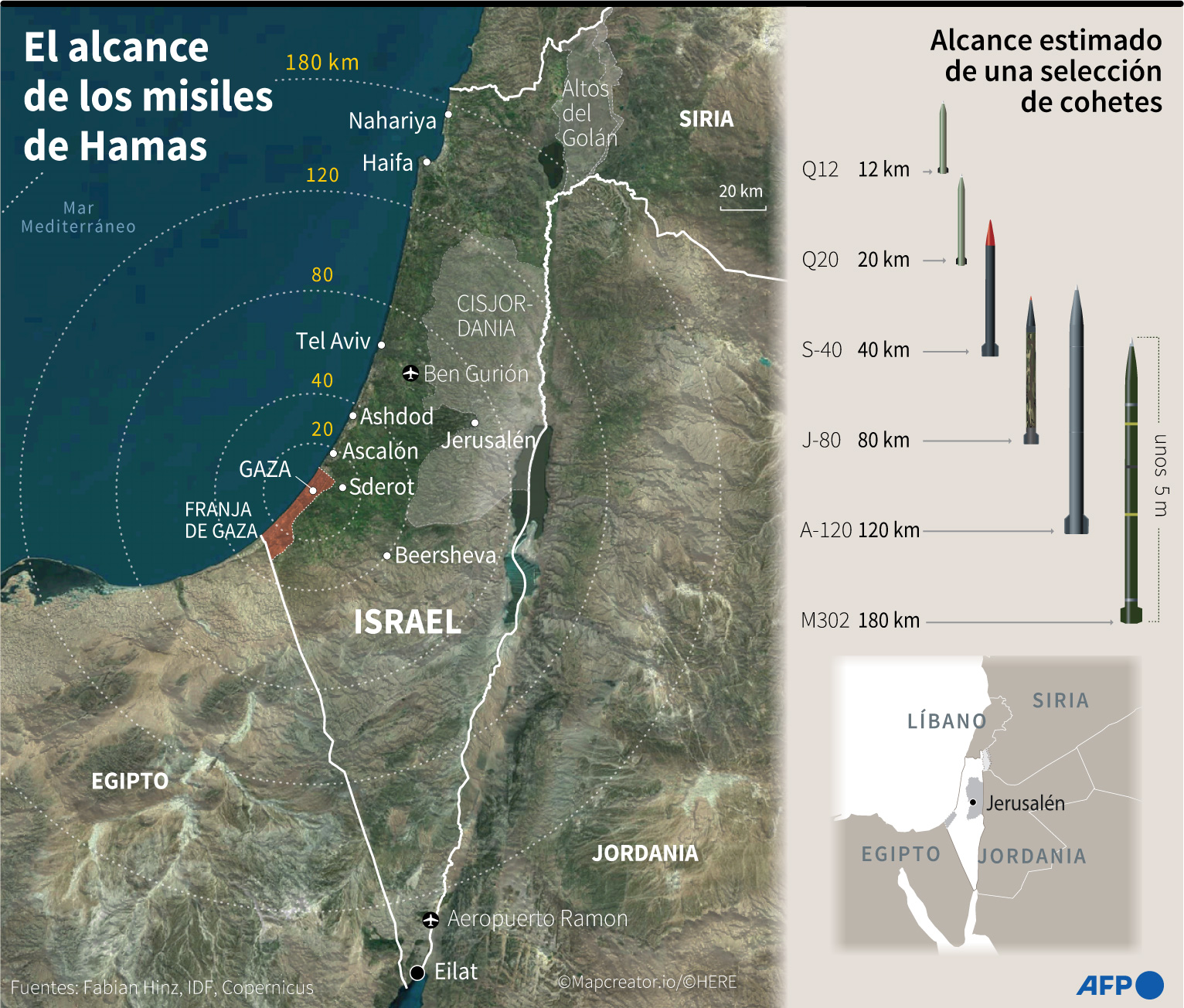Por su lado, el Hamás y la Yihad lanzaron más de 4.300 cohetes hacia Israel, una cantidad de una intensidad nunca vista contra ese país, que dispone de un escudo antimisiles que interceptó el 90% de los proyectiles.
