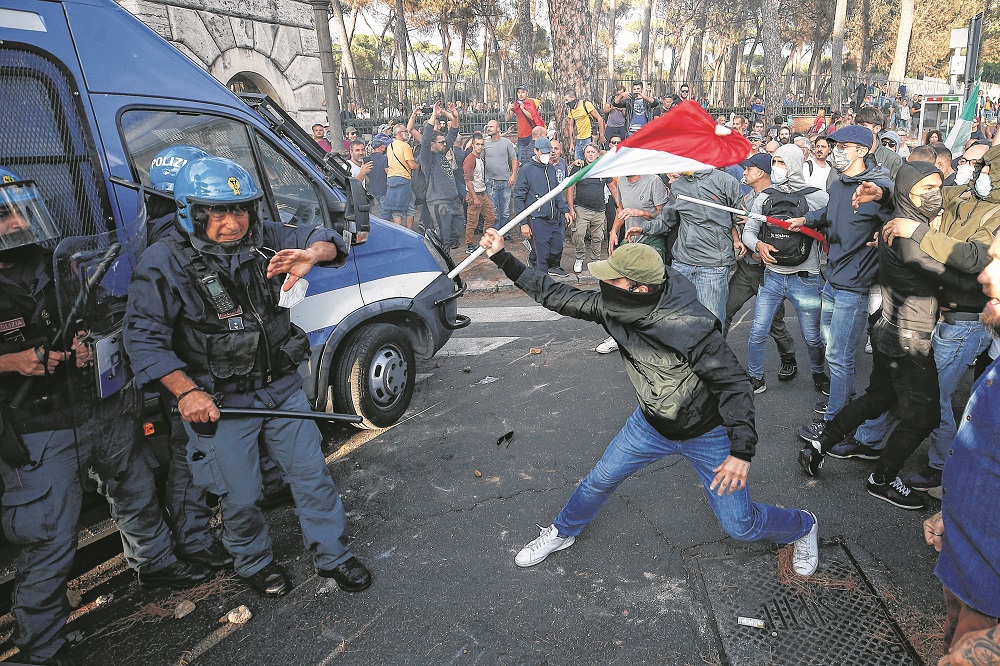 Las manifestaciones fueron importantes en Roma, Milán y Cesena, contra la obligatoriedad del certificado para los lugares de trabajo. Grupos de ultraderecha desprendidos de las marchas atacaron una sede sindical y chocaron con la policía.