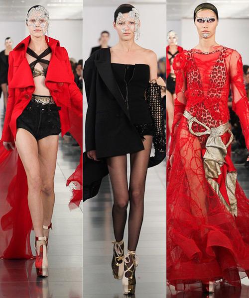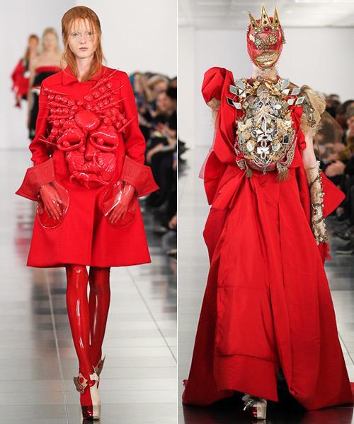 Prendas mini y patrones maxi, contrastes de rojo y negro… es la teatralidad de Galliano.Foto: MaisonMartinMargiela.