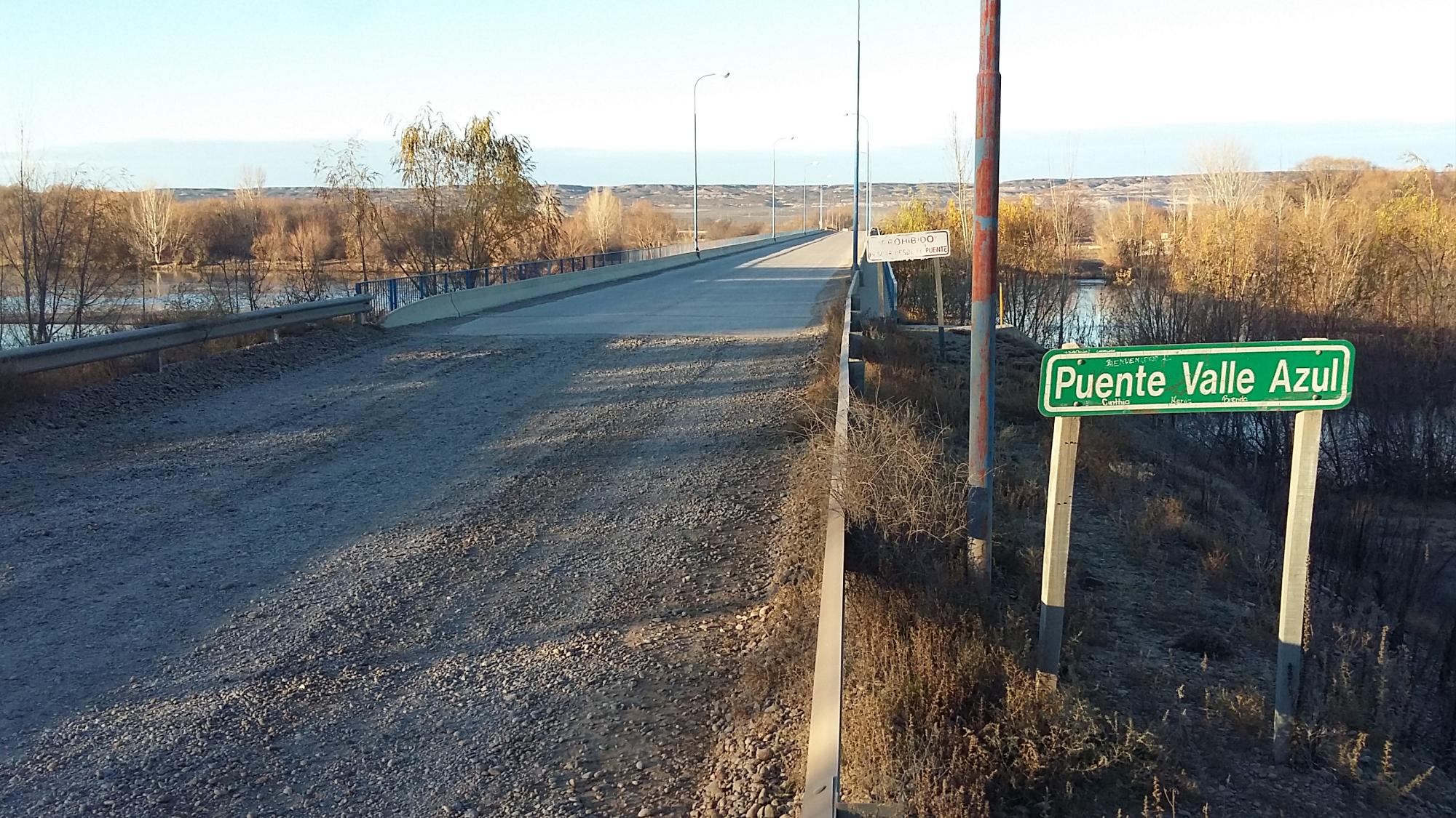 El valle se ve azul desde las bardas y así parece que nació el nombre del pueblo. En 2016 tenía 4.500 hectáreas en producción y 1.200 habitantes, aunque en temporada de cosecha la población se duplica ya que sólo el complejo frutícola llegó a emplear a más 600 personas.