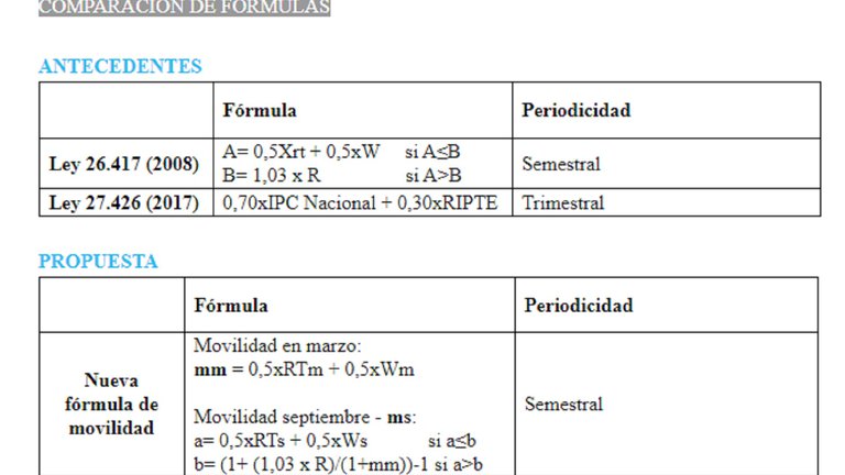 La fórmula tiene como antecedente la ley Ley N° 26.417 que estuvo vigente desde 2008 hasta su derogación en 2017, durante el gobierno de Macri y está constituida por el incremento de salarios y la recaudación, en un 50% cada uno. El Gobierno sostiene que «la fórmula que incorpora salarios implica que el ingreso de los pasivos acompañe al de los activos» y remarca que sumar la variable de recaudación «permite compartir el crecimiento y, al mismo tiempo, cuidar la sustentabilidad fiscal«.