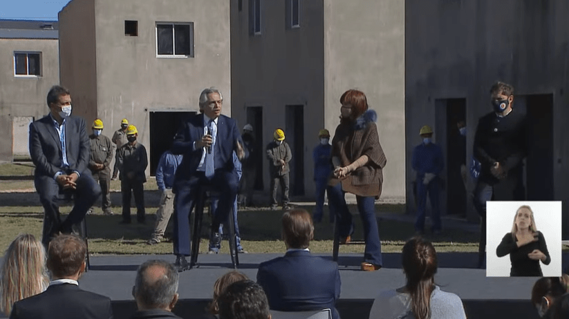 El presidente Alberto Fernández encabezó un acto en Ensenada para lanzar el Programa Reconstruir, destinado a finalizar la construcción de 55 mil viviendas. En ese contexto, el mandatario estuvo acompañado por la vicepresidenta Cristina Fernández de Kirchner; el presidente de la Cámara de Diputados Sergio Massa y el gobernador de la provincia de Buenos Aires Axel Kicillof.