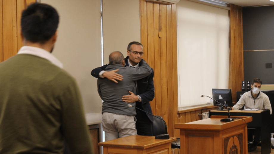 Su llanto quedó ahogado por el celoso barbijo, que quedó humedecido por las lágrimas. Y apenas terminó la lectura de la sentencia, Olguín le dio un abrazo al abogado Sebastián Arrondo, que lo defendió durante el juicio.