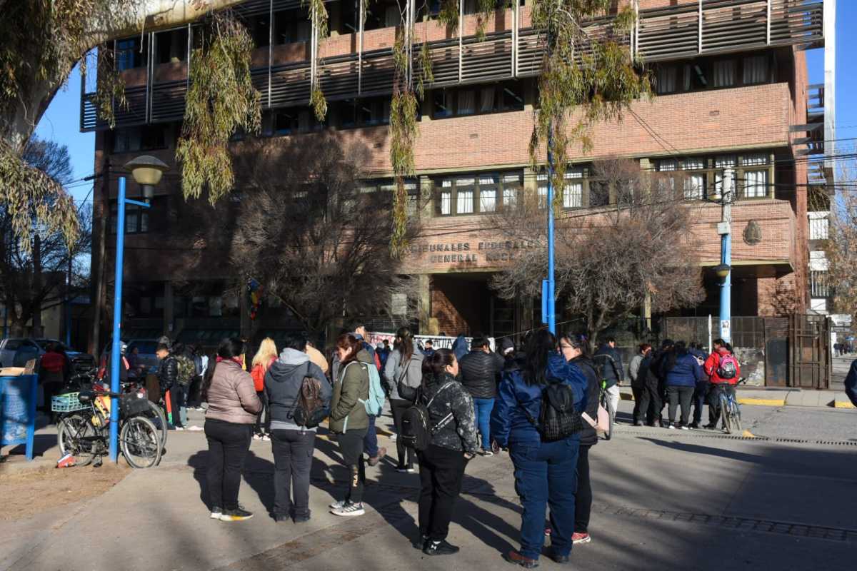 El juicio por Rafael Nahuel, un joven mapuche de 22 años asesinado de un disparo en Villa Mascardi, continúa hoy miércoles 23 de agosto con la cuarta audiencia en el edificio de Tribunal Oral Federal de Roca en la causa que se sigue contra cinco suboficiales de Prefectura Naval Argentina por homicidio agravado. Desde temprano varios grupos sociales y referentes de la comunidad mapuche, realizaron una movilización y permanecen en la calle, afuera frente al edificio.