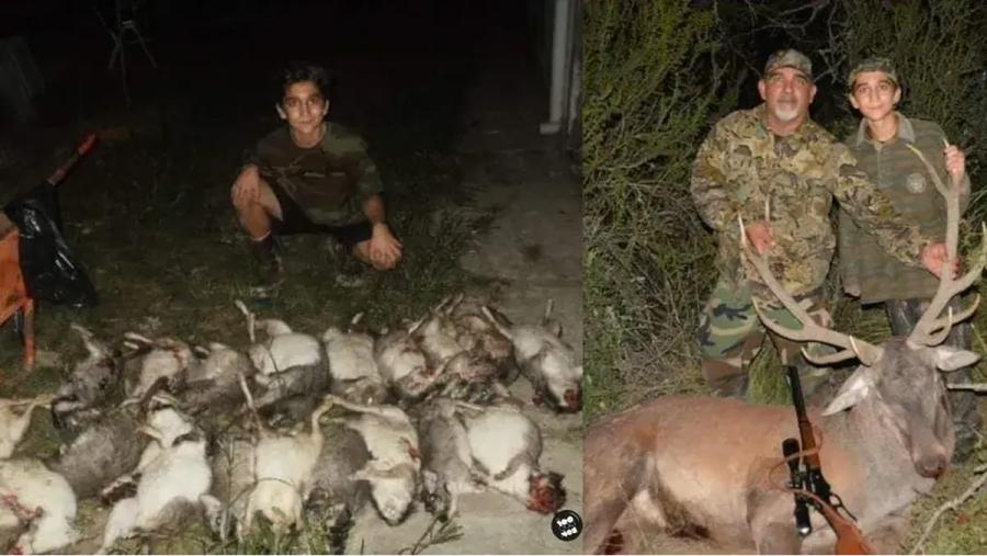 Son varias las publicaciones relacionadas a la caza. En las imágenes aparecen padre e hijo, vestidos con ropa característica, posando con armas y animales muertos.