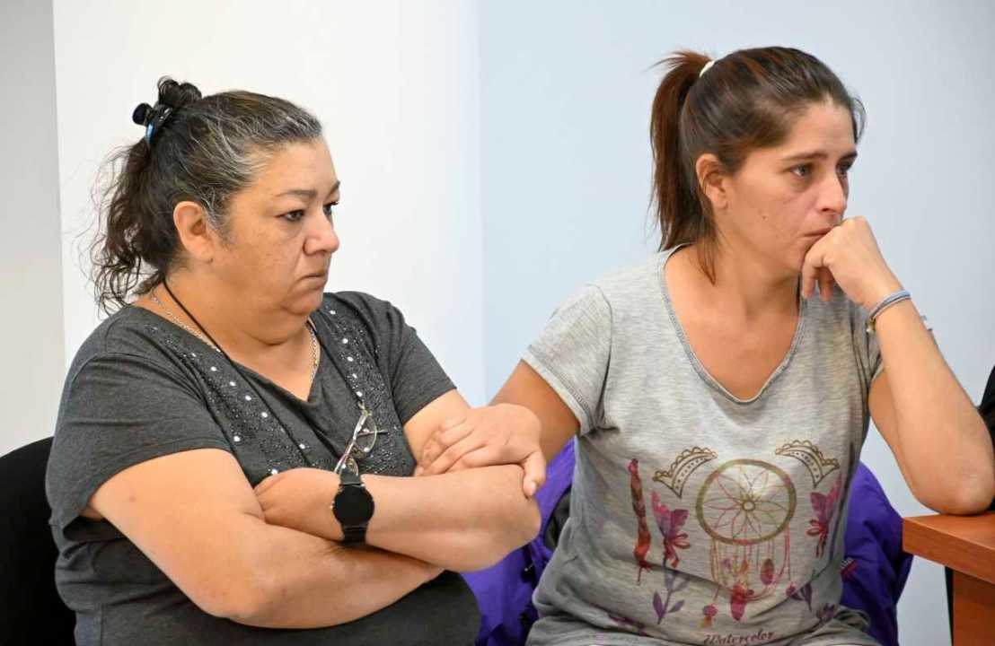 Lorena le toma el brazo a Marta, hermana de Norma, y ambas miran al acusado. Florencia Salto.