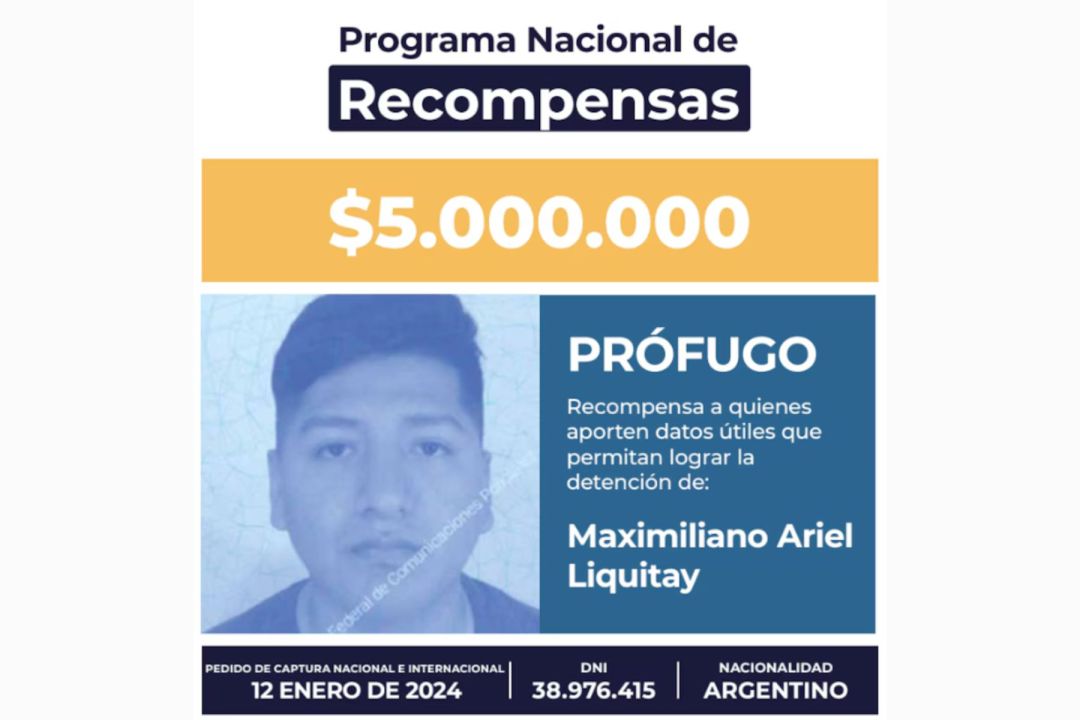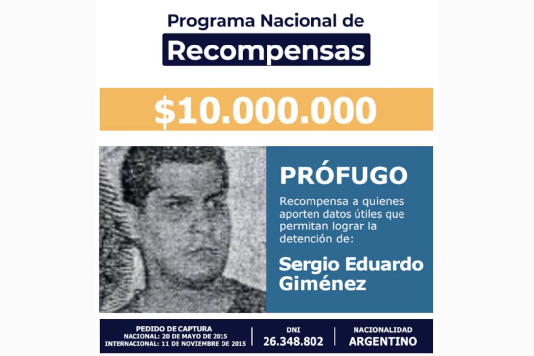 La recompensa es por la búsqueda de los delincuentes Sergio Eduardo Giménez y Maximiliano Ariel Liquitay. El primero es buscado por abuso sexual de su hijastra en complicidad con su pareja. Mientras que el segundo es investigado por ser líder narco y lavado de dinero.