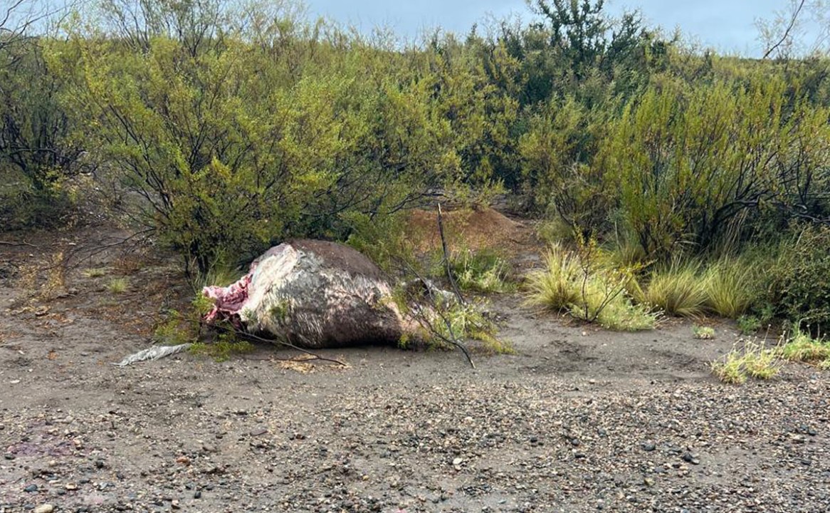 «Luego de recorrer la ruta se pudo encontrar el animal faenado, sin sus extremidades, como así también a un kilómetro de distancia otro animal muerto a causa de un disparo de arma fuego», dijo un productor.