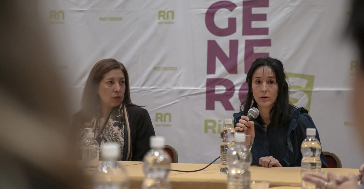 Carreras junto a Val Herrera hoy en la presentación del encuentro de género en Bariloche. Foto: Gentileza Gobierno