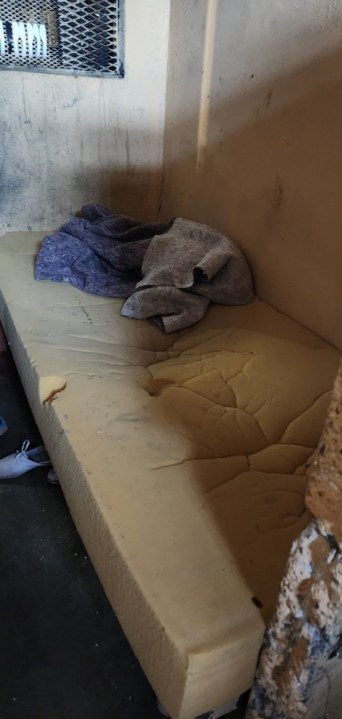 La descripción continúa: «Sobre las literas donde las personas privadas de su libertad deben acostarse los colchones (de goma espuma) están en su totalidad en muy mal estado, con agujeros, deformados, sucios y sin densidad alguna. No cuentan con sábanas ni frazadas ni almohadas, salvo en algunos casos que un trapo o tela es utilizado como cobertor, y en algunos casos han cortado (arrancado) la tela al colchón para poder abrigarse».