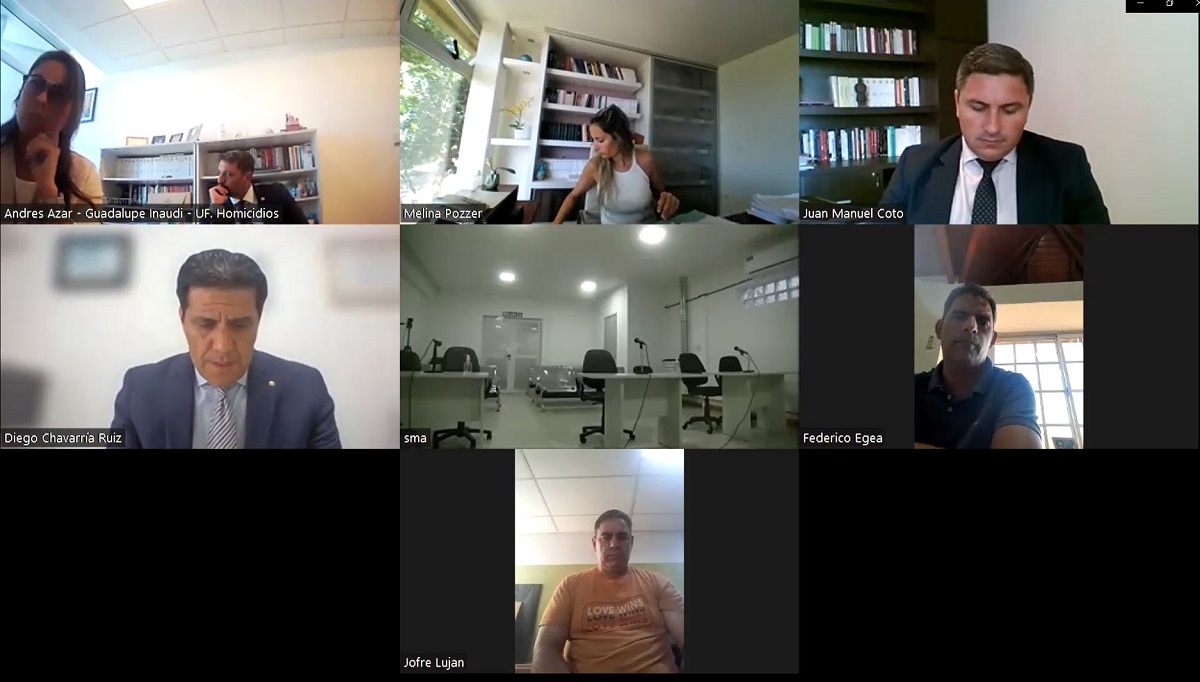 La audiencia de hoy se realizó íntegramente por Zoom. La condujo desde Zapala el juez de Garantías Diego Chavarría Ruiz, por la fiscalía estuvieron Guadalupe Inaudi y Andrés Azar; Federico Egea y Melina Pozzer por la querella, y Juan Coto como defensor, todos conectados desde sus oficinas en Neuquén.