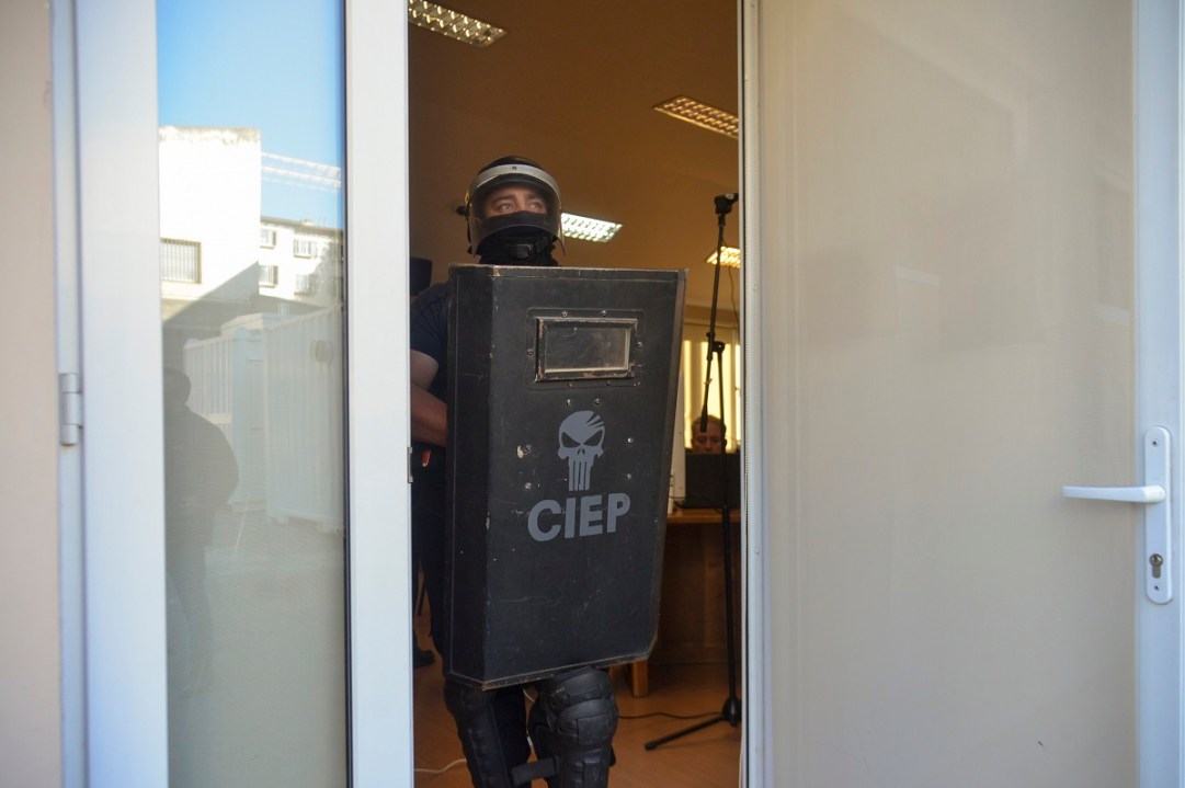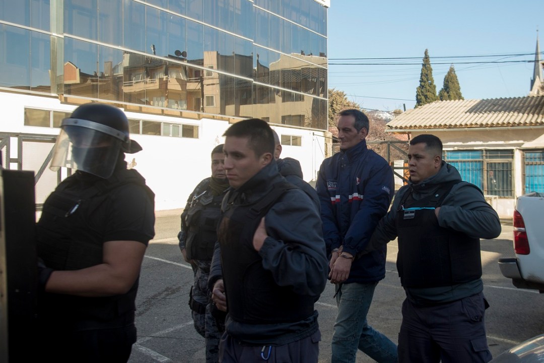 Recién pasadas las 11.30, los dos imputados por el crimen de Garay, Diego Ravasio y Martín Feilberg, llegaron al edificio de Tribunales, rodeados por una fuerte custodia policial. Afuera un grupo allegado a la comunidad mapuche Quemquemtreu reclamaba que lo dejara ingresar a la sala Pefaure.