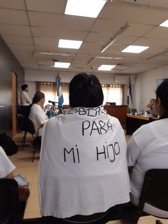 Durante la audiencia y posterior a la misma, un grupo de personas que se identificaron como familiares y conocidos del acusado se manifestaron en la calle, protagonizando un reclamo por la declaración de inocencia del hombre.