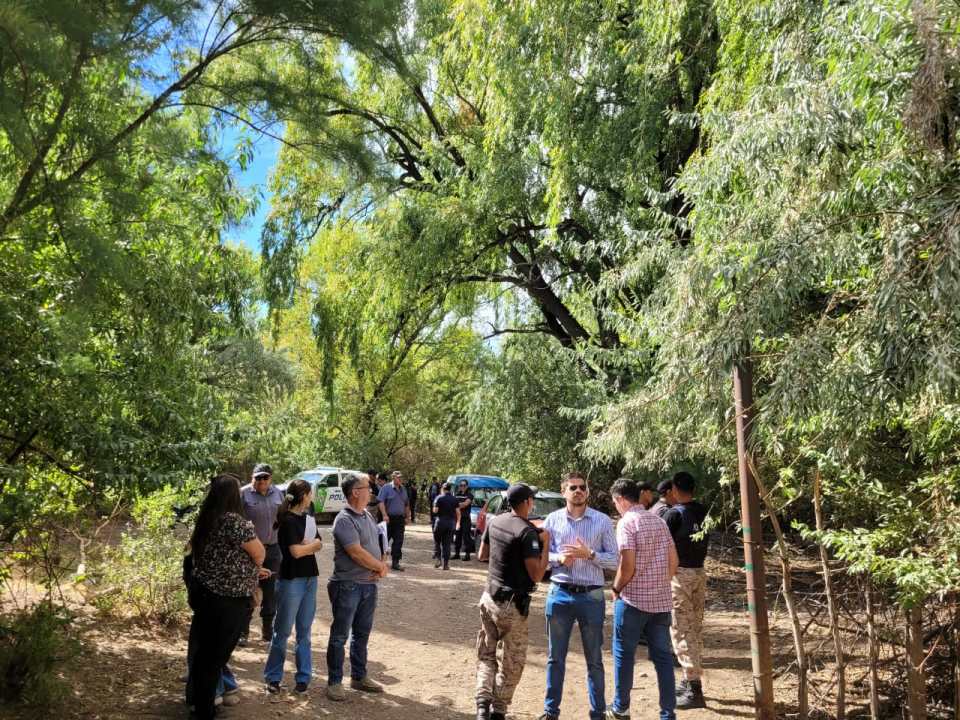 «Estamos en la confluencia. Hicimos unos 800 metros a pie, de donde está la tranquera. Estamos acompañados por el fiscal y personal del municipio«, comentó Carlos Retamal, uno de los voceros de los denunciados. La inspección se desarrolló desde el sector de la controvertida tranquera hasta las costas del río Negro.