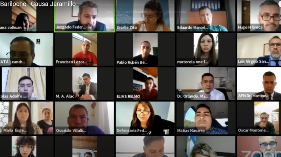 A través de la plataforma Zoom, la Justicia Federal realizó hoy la segunda jornada del juicio oral y público contra integrantes de la comunidad mapuche Lafken Winkul Mapu acusados del delito de usurpación a tierras de Parques Nacionales en Villa Mascardi, a unos 35 kilómetros de Bariloche. El juez Hugo Greca informó que el próximo lunes retoma el debate y los testigos comenzarán a participar a partir del martes.
