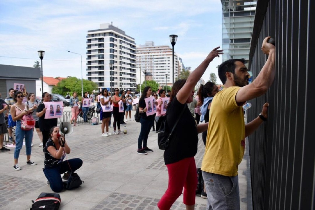 Familiares de niños y niñas, en las afueras del edificio judicial de Neuquén. (Matías Subat)