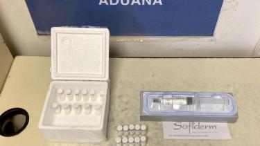 “Dentro de la caja de madera había un envase de telgopor que contenía 30 ampollas con una sustancia utilizada para lifting facial, de marca Israderm, y una jeringa con ácido hialurónico, marca Sofiderm”, sostuvo la Aduana.