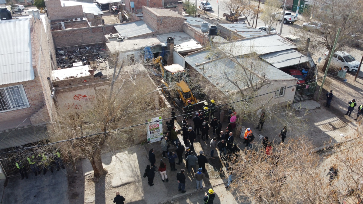 Gerez subrayó además que la demolición fue posible gracias al trabajo conjunto del gobierno provincial, la policía, el Ministerio de Seguridad y la intendencia de Centenario. “Aquí no solo se vendían drogas, también se comercializaban elementos robados y se cometían otros delitos”, sostuvo.