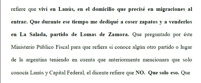 Dijo a los fiscales que en Argentina se dedicaba a coser zapatos y venderlos en La Salada.