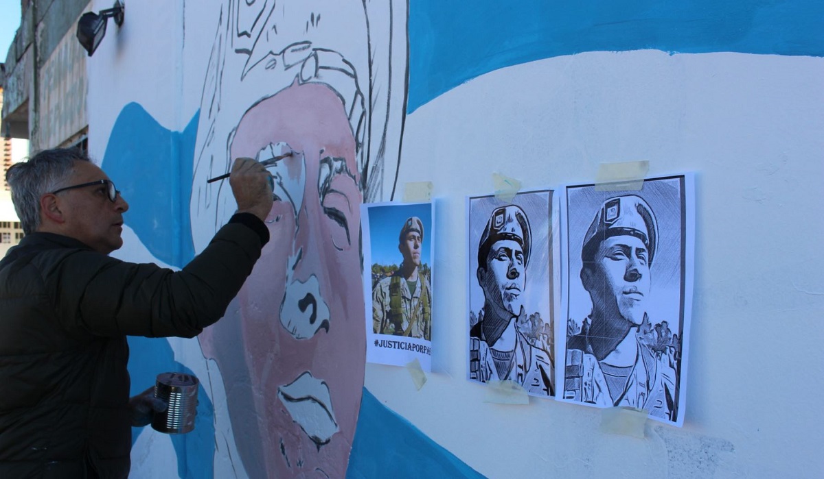 Un mural recuerda al soldado Pablo Córdoba frente al cuartel de Zapala
