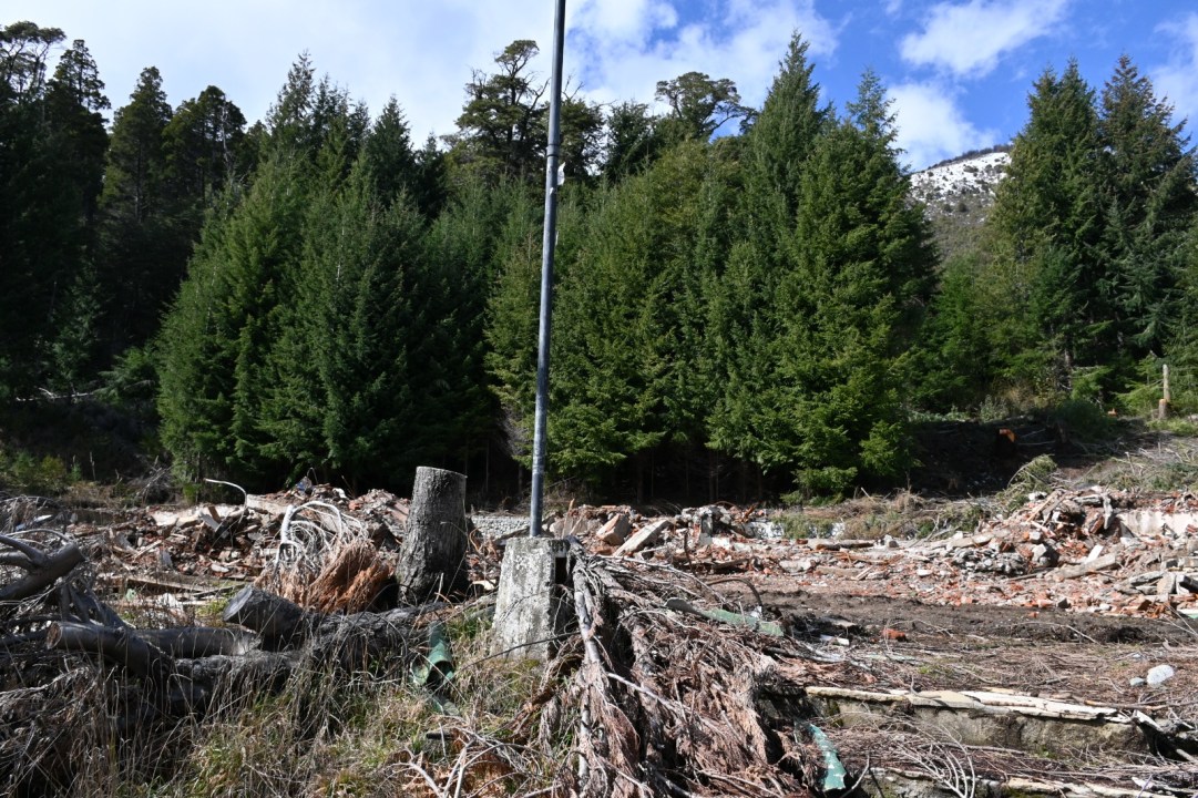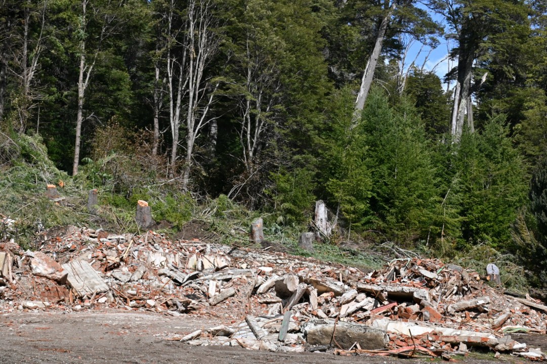 A la altura del kilómetro 2006 de la ruta nacional 40 en Villa Mascardi, distante a unos 35 kilómetros al sur de Bariloche, hay un espacio abierto. Allí, se acumulan cientos de metros cúbicos de escombros. Decenas de pinos, cipreses y coihues, que siguen en pie, rodean ese predio. Son testigos silenciosos que indican que en ese lugar estuvo durante décadas el hotel Mascardi. Hoy, es tierra arrasada.