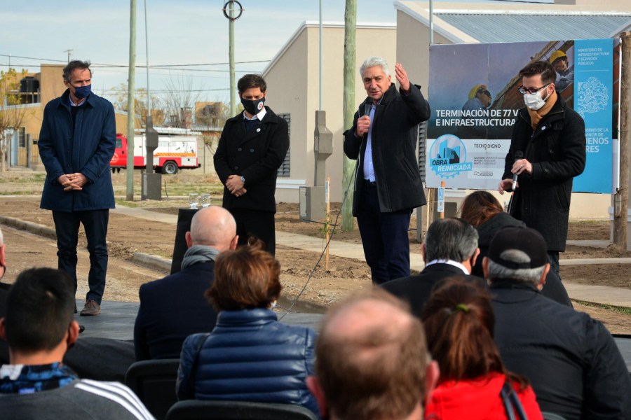 El gobernador bonaerense visitó la cabecera del distrito más austral de la provincia. Entregó doce viviendas que fueron iniciadas hace casi diez años. Estuvo acompañado por el ministro de Obras Públicas de Nación, Gabriel Katopodis.