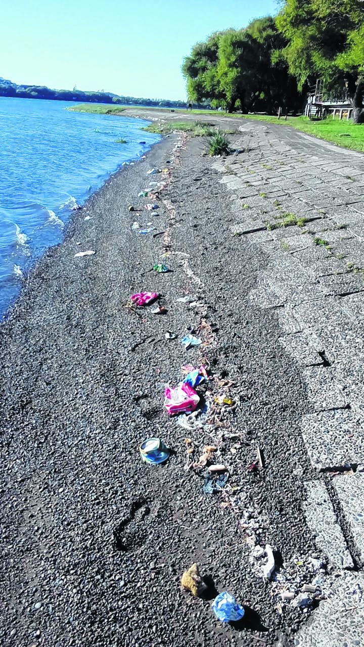 El plan de recuperación de residuos deja mucho que desear. Plásticos, cartones y papeles ensucian la costanera. Cuando suceden los derrames cloacales, también drenan hacia allí.