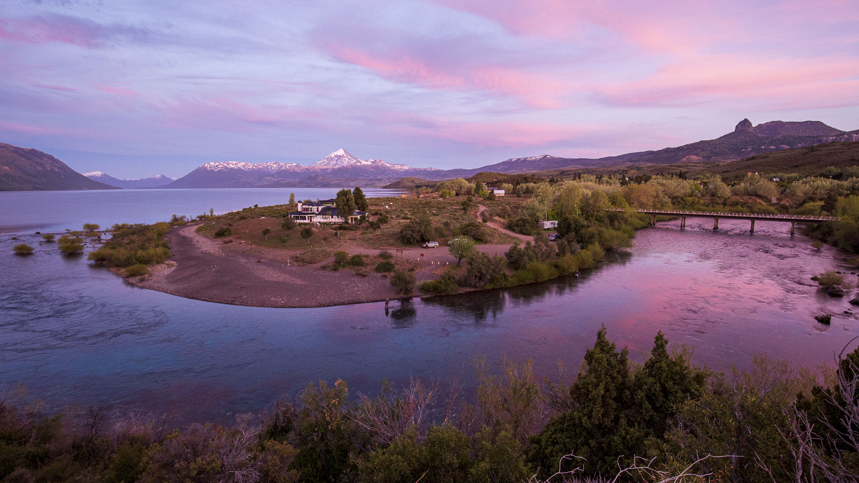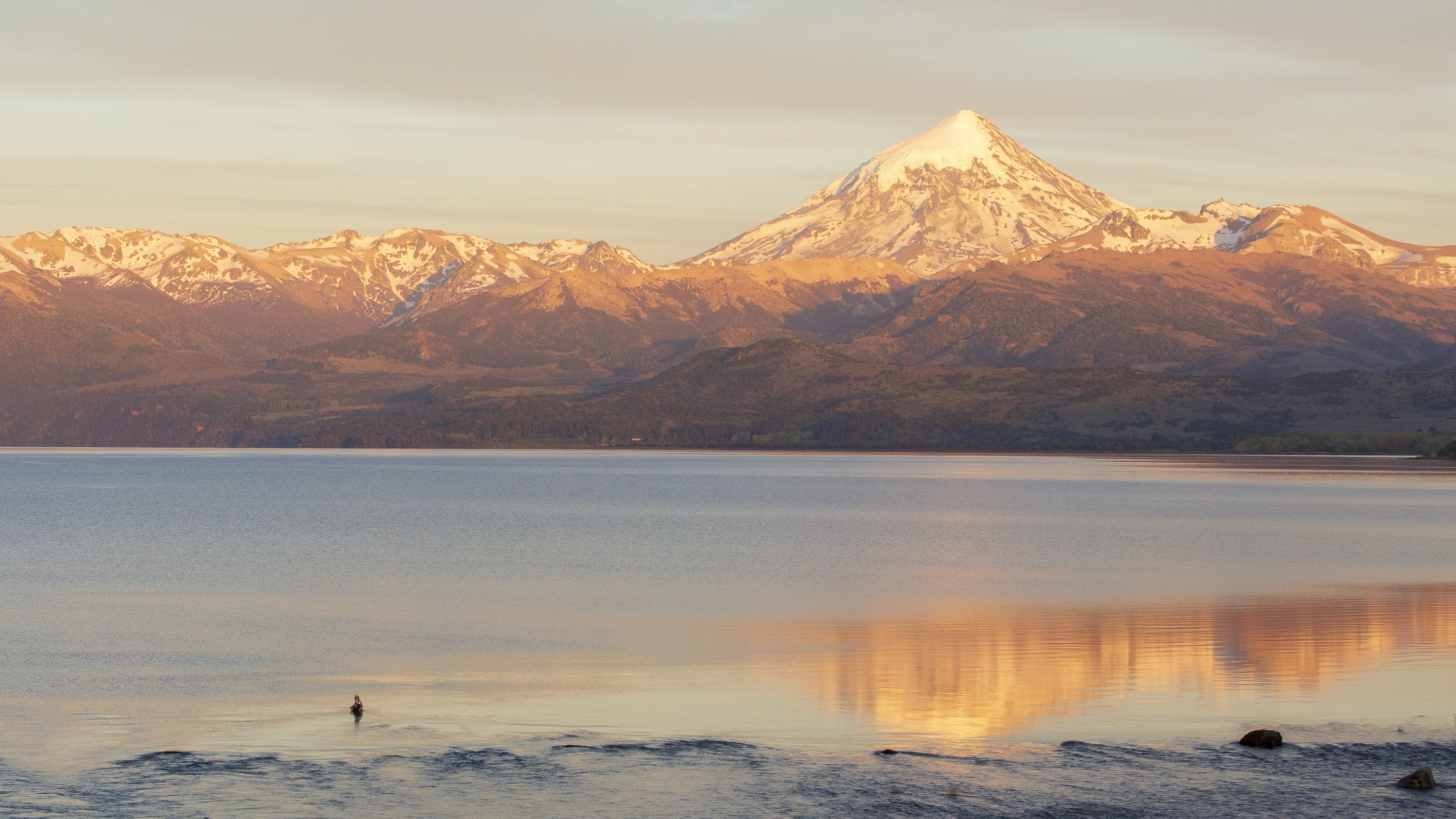 Mientras cae la tarde, el paisaje se vuelve más bello. Y con el imponente Lanín de fondo, en la curva del Chimehuin, donde muchos pescadores continúan con su actividad, podemos observar una hostería que se está tornando un punto de referencia para los aficionados.
