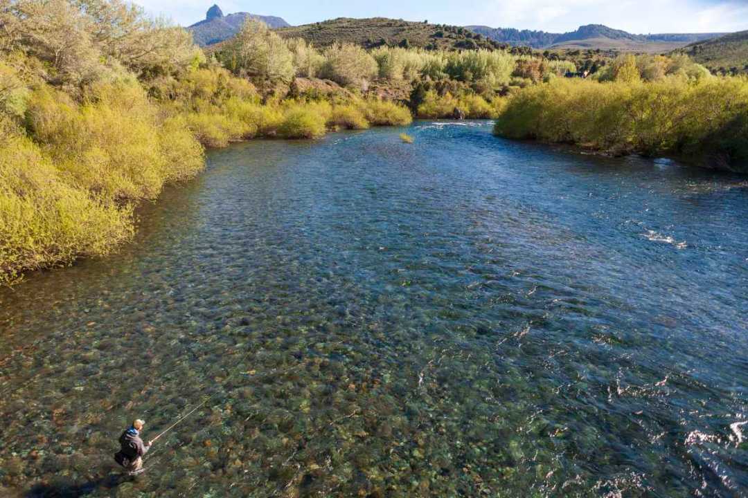 «Algo para tener en cuenta, es ventoso. Siempre hay que pensar en equipos como un 6, un 7. Se usan muchos shooting heads y moscas muy finitas por lo general, es otro patrón de moscas muy diferentes al resto de los ríos, siempre imitando peces pequeños como los que comen ahí las truchas. En cuanto a los líderes, de 9 pies, con un 028, un 026 van a andar bien, por lo general se pesca con líneas de hundimiento. Y justamente ahora, a principios de temporada es una parada obligada para el pescador con mosca para ir a hacer unos tiritos», agregó.
