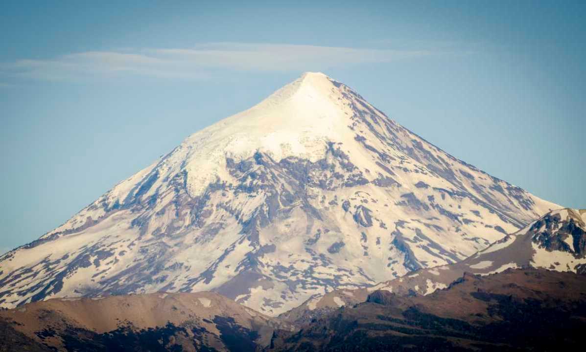 A los pocos kilómetros de camino apareció el gran volcán Lanín, apenas algo más claro que el cielo, por ese glaciar apenas iluminado, siempre blanco, que destaca desde donde se lo mire.