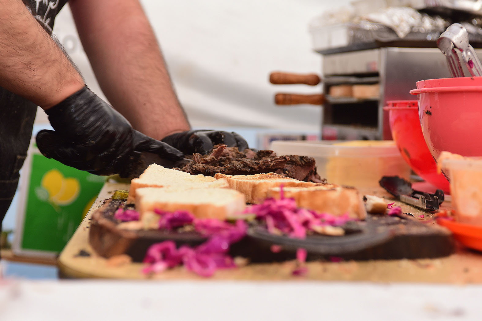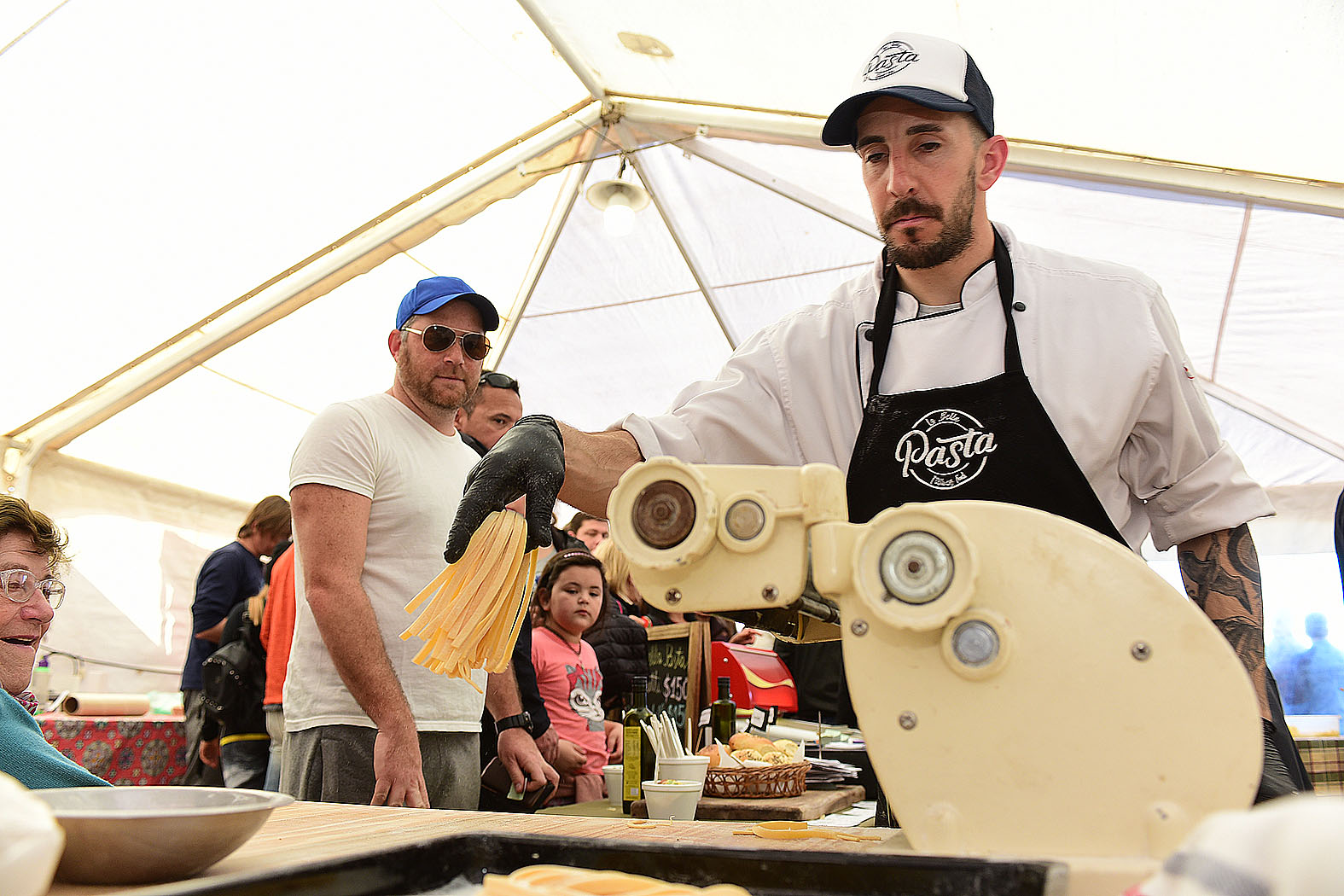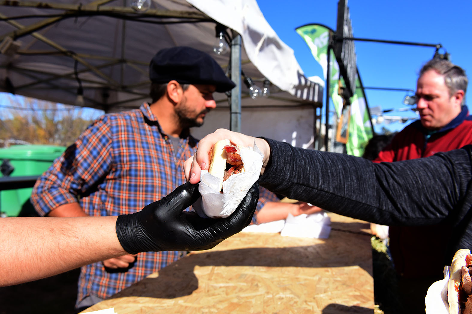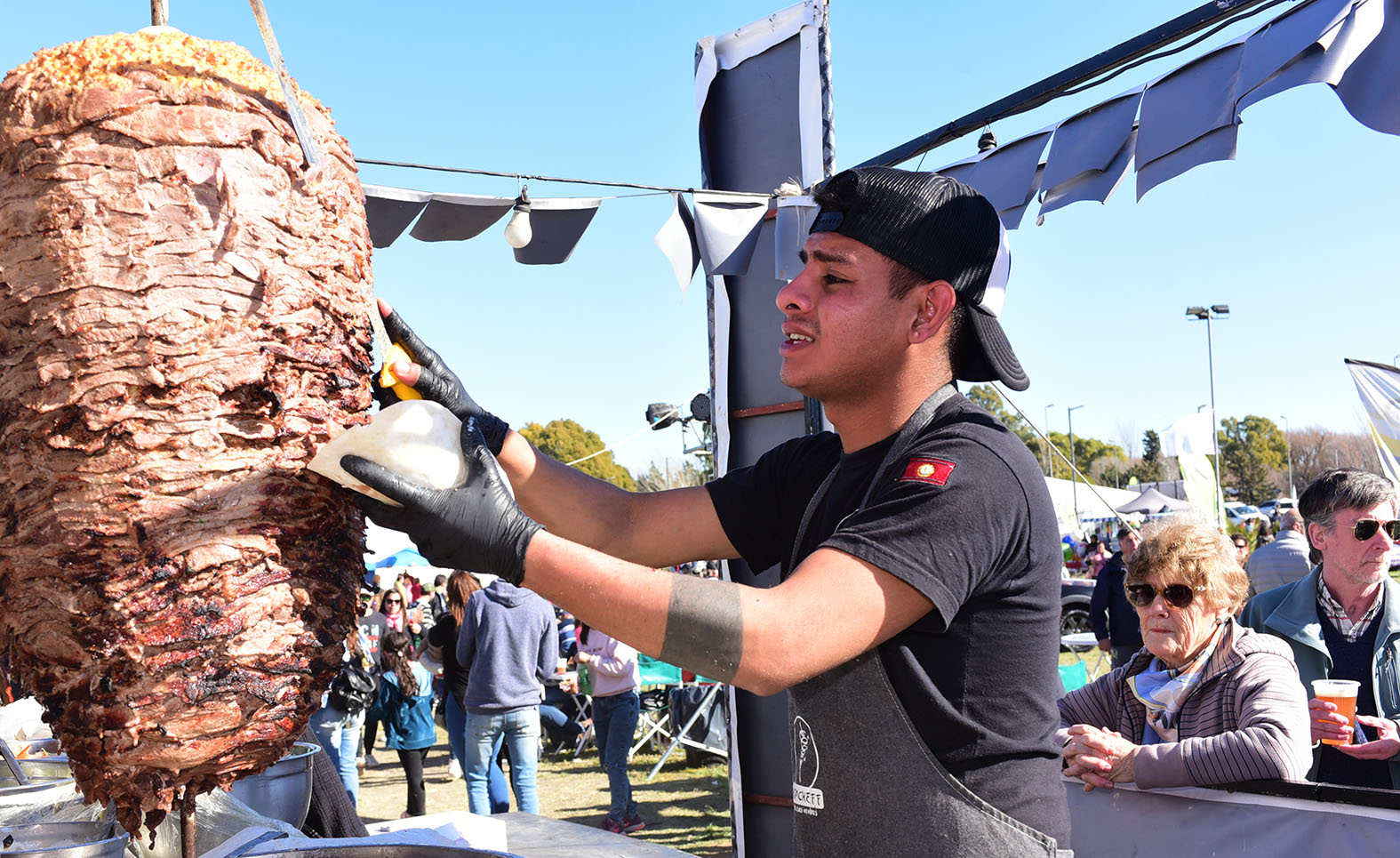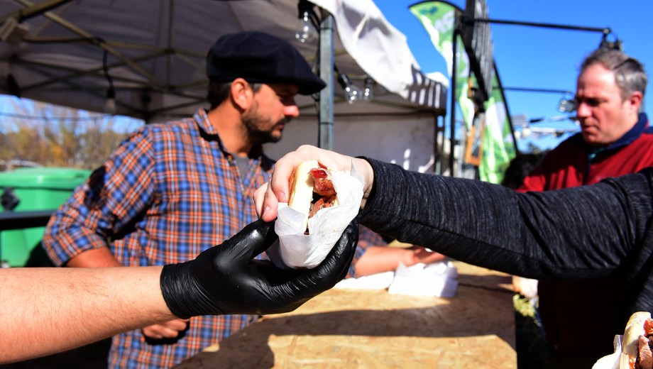 La gente tuvo que esperar en largas filas para probar diferentes cortes de “Carne al Humo” que trajo Juan Pedro Piergentili desde Roca portando un pequeño tren de hornos que se alimentan con leña de eucalipto. Para este acontecimiento, este emprendimiento necesitó de unos 500 kilos entre vacuno, cerdo y panceta.