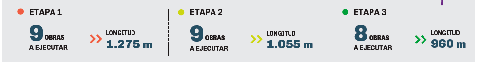 La primera comprenderá nueve obras, por 1.275 metros, la segunda etapa será de otras nueve obras, con 1.055 metros y la tercera consistirá en ocho obras, por 960 metros. En total se renovarán colectores a lo largo de 3.290 metros lineales.