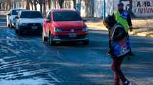 Por el hielo de las calles, una pareja derrapó con su moto y cayó en Roca