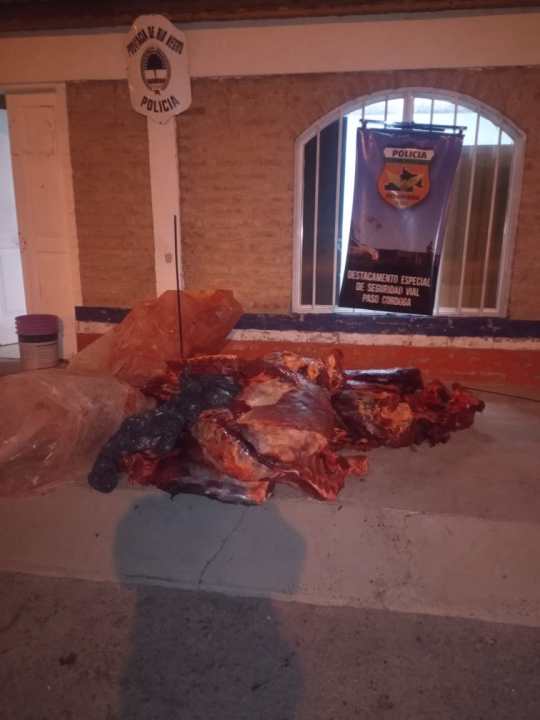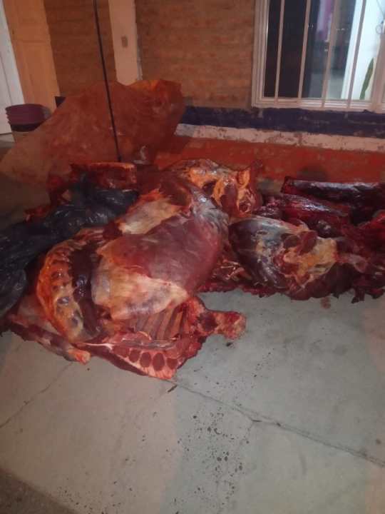 Al momento de verificación exhaustiva, los efectivos solicitaron la documentación al conductor de la camioneta y se determinó que no poseía ningún certificado, refrigeración, ni seña del animal.