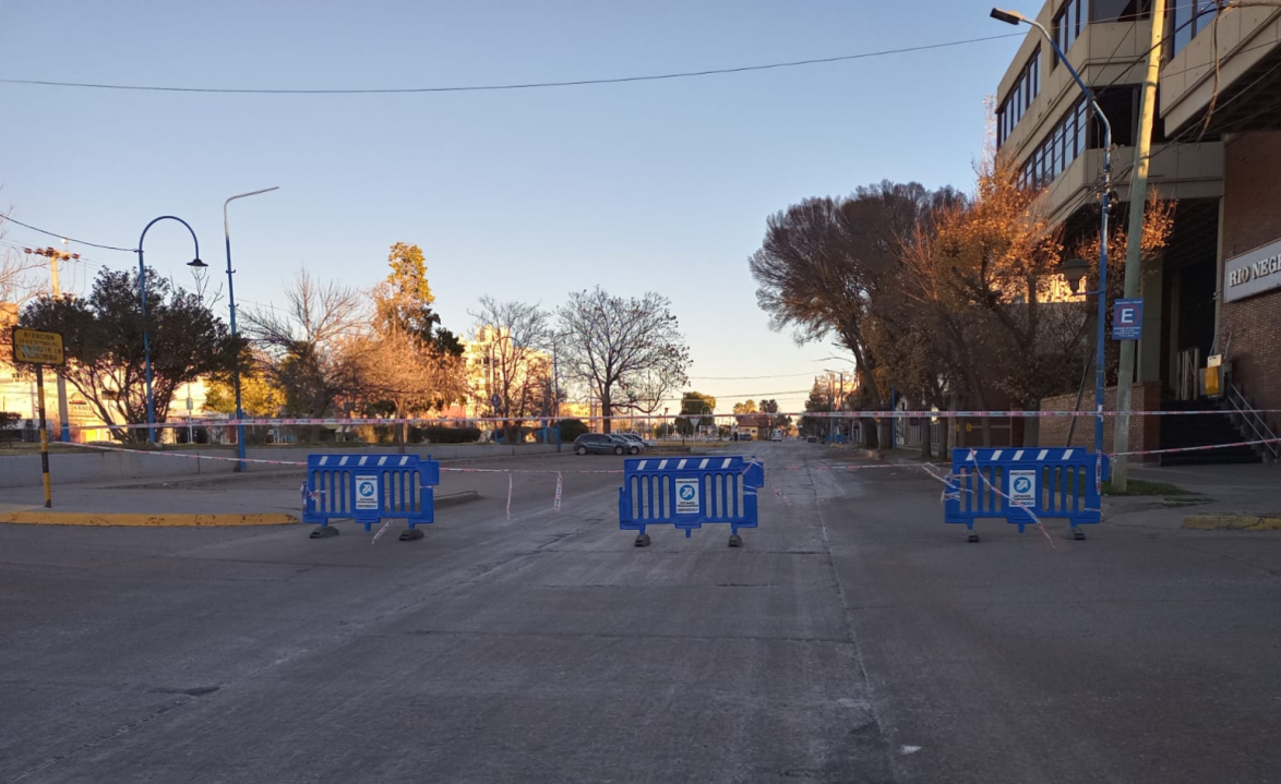 A partir de las 7 de la mañana, trabajadores del municipio colocaron vallas, cortando el ingreso a la rotonda de Avenida Roca y 25 de Mayo, en el sentido sur-norte.