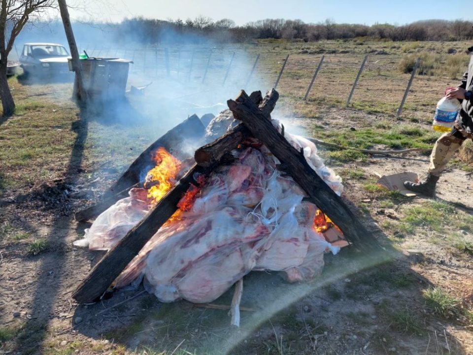 Posteriormente, se realizó el decomiso y se incineró lo secuestrado en presencia de testigos. Este hecho se sumó a otro decomiso importante que se realizó el martes pasado, sobre la Ruta 22 de Chichinales, donde se incautaron cerca de 2 toneladas de carne vacuna.